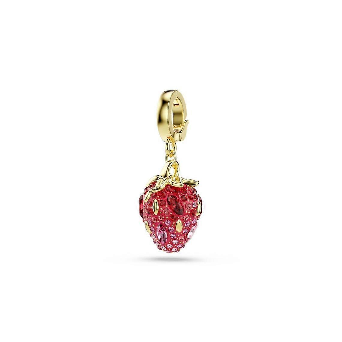 Swarovski privjesak sa kristalima jagode. Ovaj privjesak sa jagodom kombinuje živu crvenu nijansu sa pozlaćenom završnom obradom za šik, luksuzan izgled. Ukrašen blistavim Swarovski kristalima, hvata svjetlost pri svakom pokretu, dodajući dašak sjaja i sofisticiranosti.