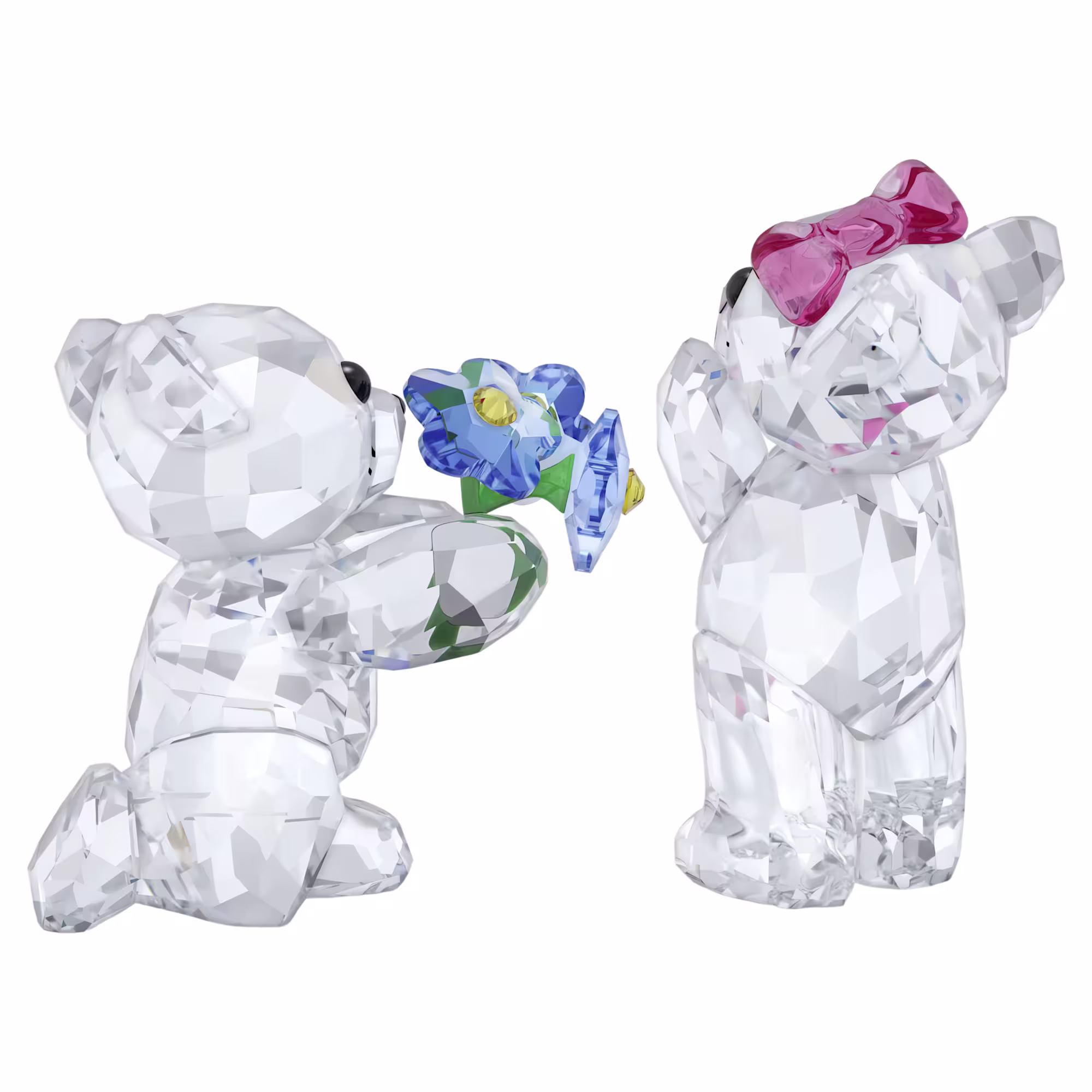 Ljubav je u centru pažnje u ovoj romantičnoj sceni sa Kris Medvedićem. Izrađena sa 913 faseta, priča otkriva dirljiv trenutak između para Kris Medvedića, upotpunjena svijetlim buketom plavog cvijeća i ružičastom mašnom za živopisne boje. Poklonite ove medjvediće nekome posebnom da izrazite svoja osećanja obožavanja. Dekorativni predmet. Nije igračka. Nije pogodno za djecu mlađu od 15 godina.
