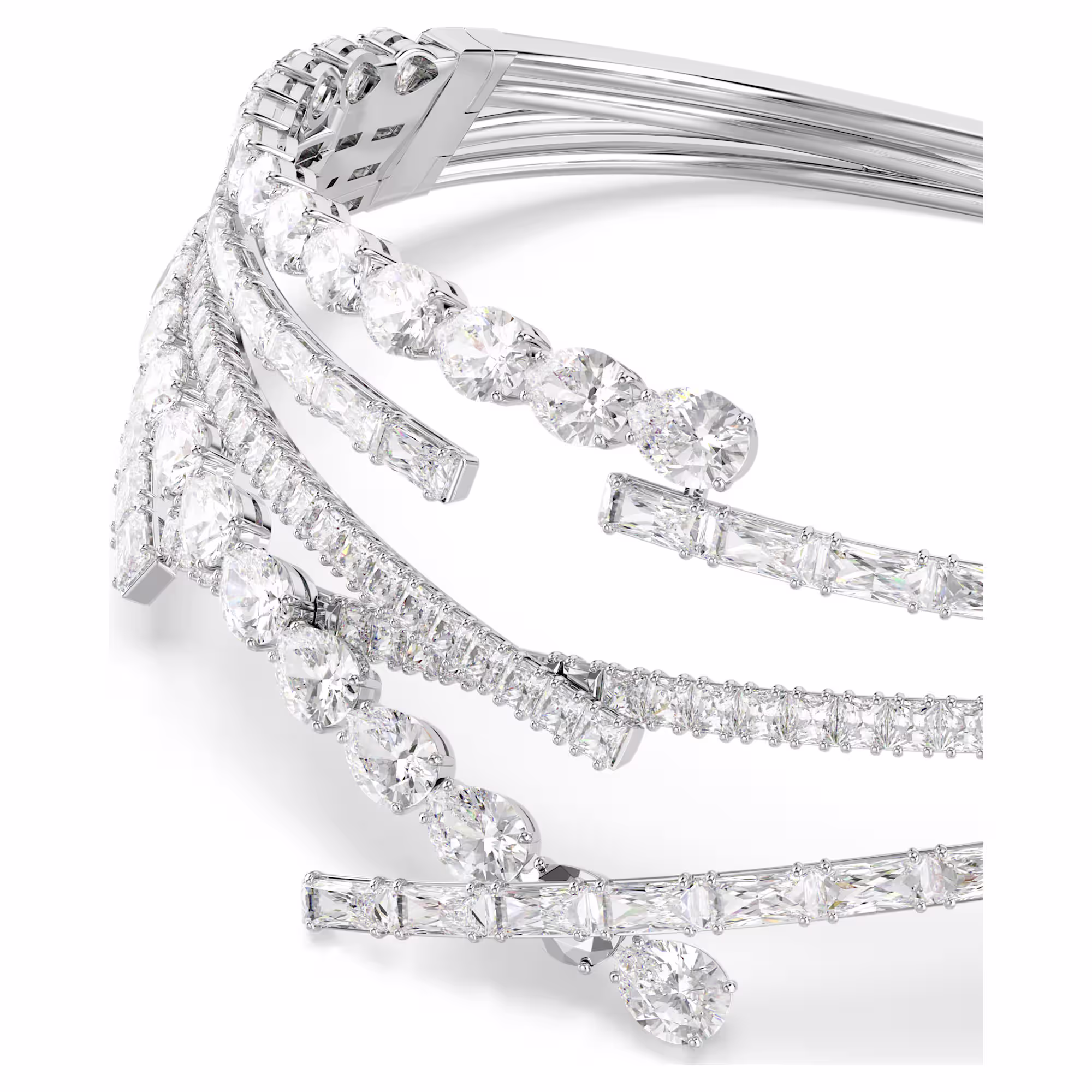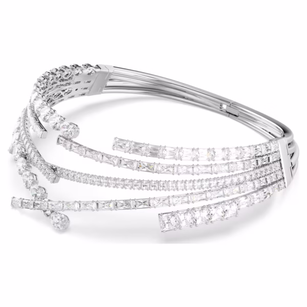 Klasičan primjer Swarovski savoir-faira, ova zapanjujuća ogrlica je vrhunski način da unesete glamur u svoj stil. Elegantan i moderan dizajn je rodijumski pozlaćen i ima preklopnu kopču za udobno i sigurno prianjanje. Da bi se stvorio izgled blistavog sjaja, pet različitih rezova Swarovski cirkonija se koristi za ukrašavanje pramenova ogrlice, dodajući još više dramatičnosti blistavom izgledu. Nosite ovaj nakit sa odgovarajućom narukvicom i naušnicamas za izgled čiste sofisticiranosti.