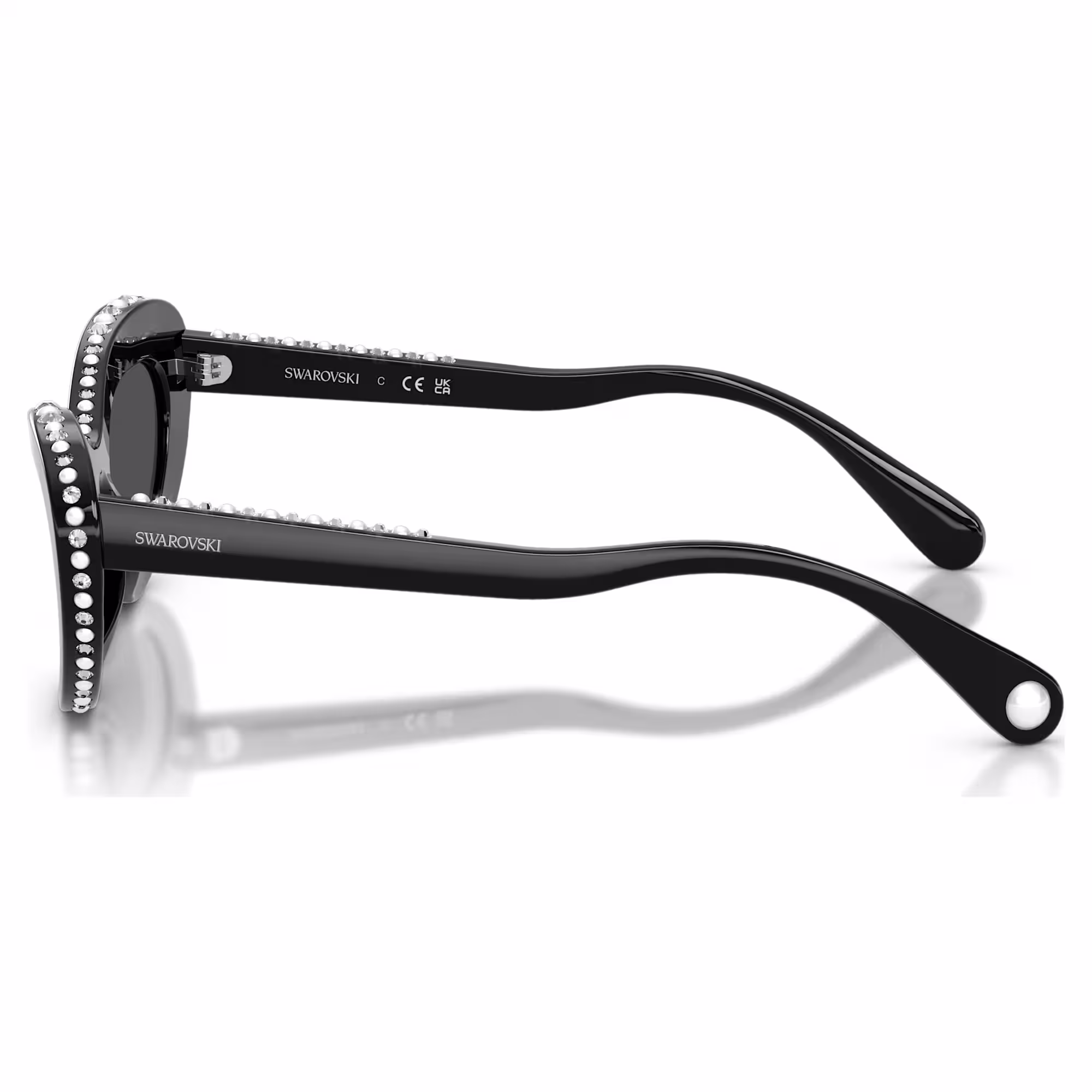 Smjele i luksuzne, ove naočare za sunce sa mačijim okom dolaze sa tamno sivim sočivima i crnim okvirima, koji su prelijepo obogaćeni naizmeničnim providnim kristalima i bijelim Swarovski kristalnim biserima. Nosite ih da biste dali izražajan stilski izraz tokom najsvjetlijih ljetnjih dana.
