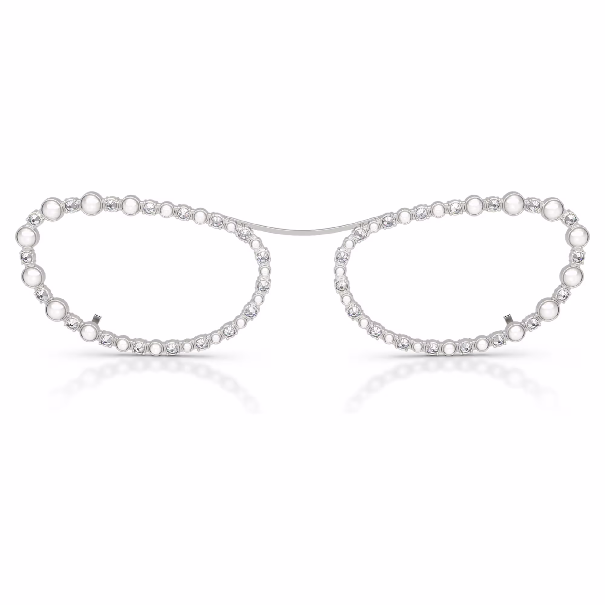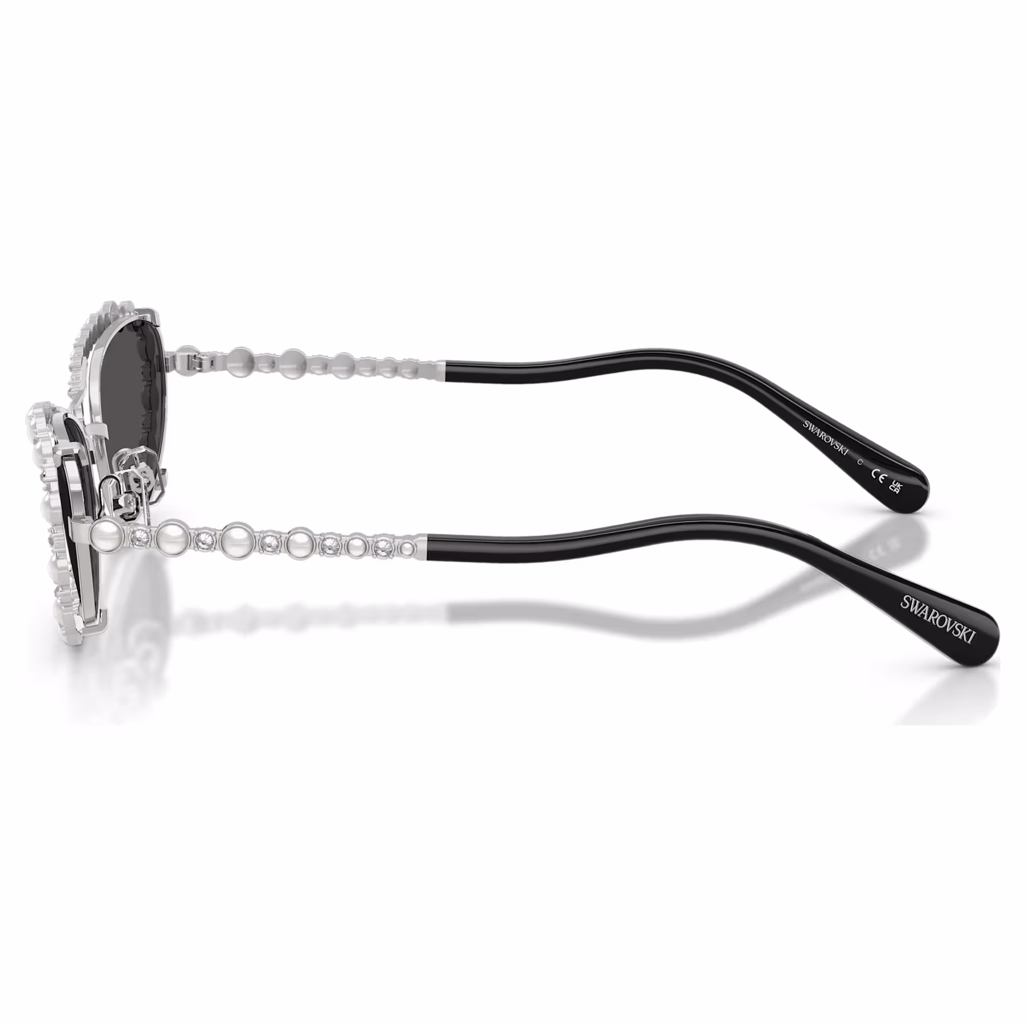 Ove Swarovski naočare za sunce predstavljaju svestran stilski izbor. Uz tamno siva sočiva, srebrni okviri su izrađeni u klasičnom ovalnom obliku i mogu se nositi same ili sa okvirima koji se zakopčavaju, a obogaćeni su naizmeničnim providnim kristalima i bijelim Swarovski kristalnim biserima. To su dva prepoznatljiva izgleda koja se lako mogu mijenjati u skladu sa vašim raspoloženjem.