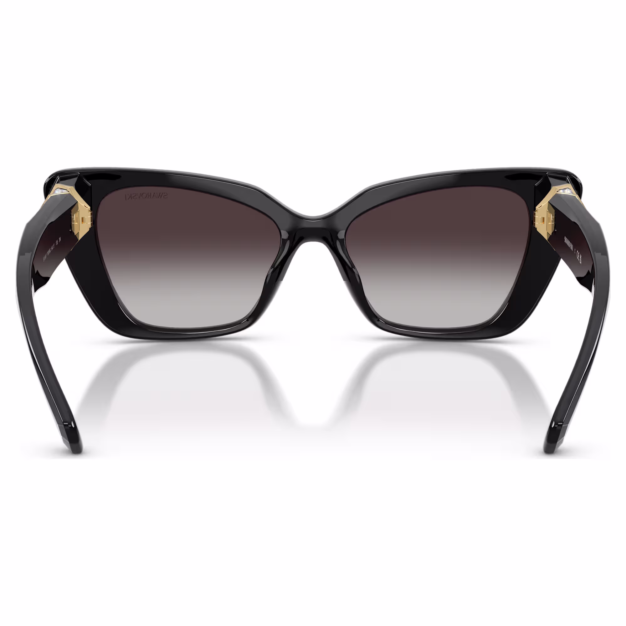Ovaj izražajni par sunčanih naočara kombinuje inovaciju sa prepoznatljivim Swarovski stilom. Inspirisani kultnom porodicom nakita Millenia, sjajni crni okviri imaju ekskluzivne šarke sa svake strane, izrađene sa dva providna osmougaona kristala. Tamnosiva sočiva su zatim predstavljena u dramatičnom obliku mačjeg oka za ultramoderan glamur.