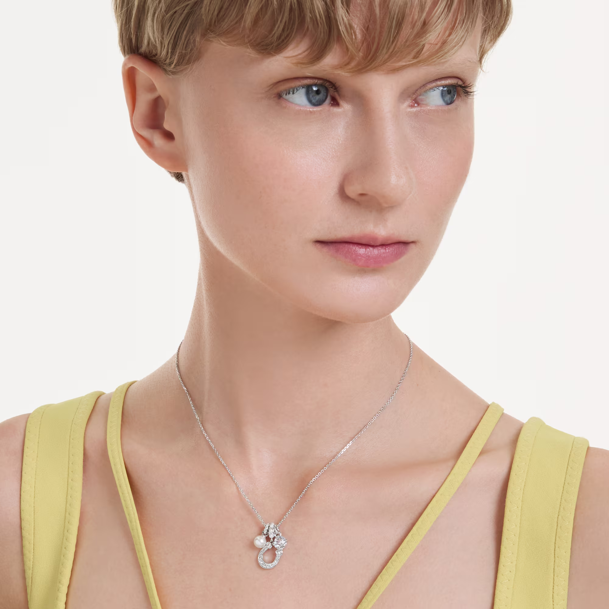 Inspirativan dizajn za svakodnevni uspjeh, ovaj blistavi privezak je rodijumski pozlaćen i ukrašen velikim kristalom i Swarovski kristalnom perlom. Ispod visi motiv potkovice, otkrivajući svoj blistavi pave od providnih kristala. Nosite ovaj privezak sami ili ga poklonite nekome ko juri svoje snove.
